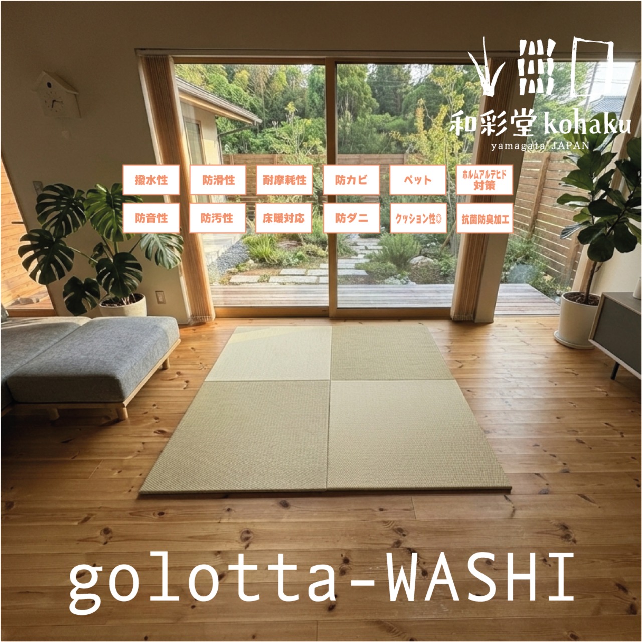 置き畳 golotta-WASHI ゴロッタ 和紙 和紙おもて 床暖対応 ペット想い 防音対策 クッション性◎ イグサより丈夫 撥水・防汚 820㎜×820㎜ 新生活 賃貸物件にも