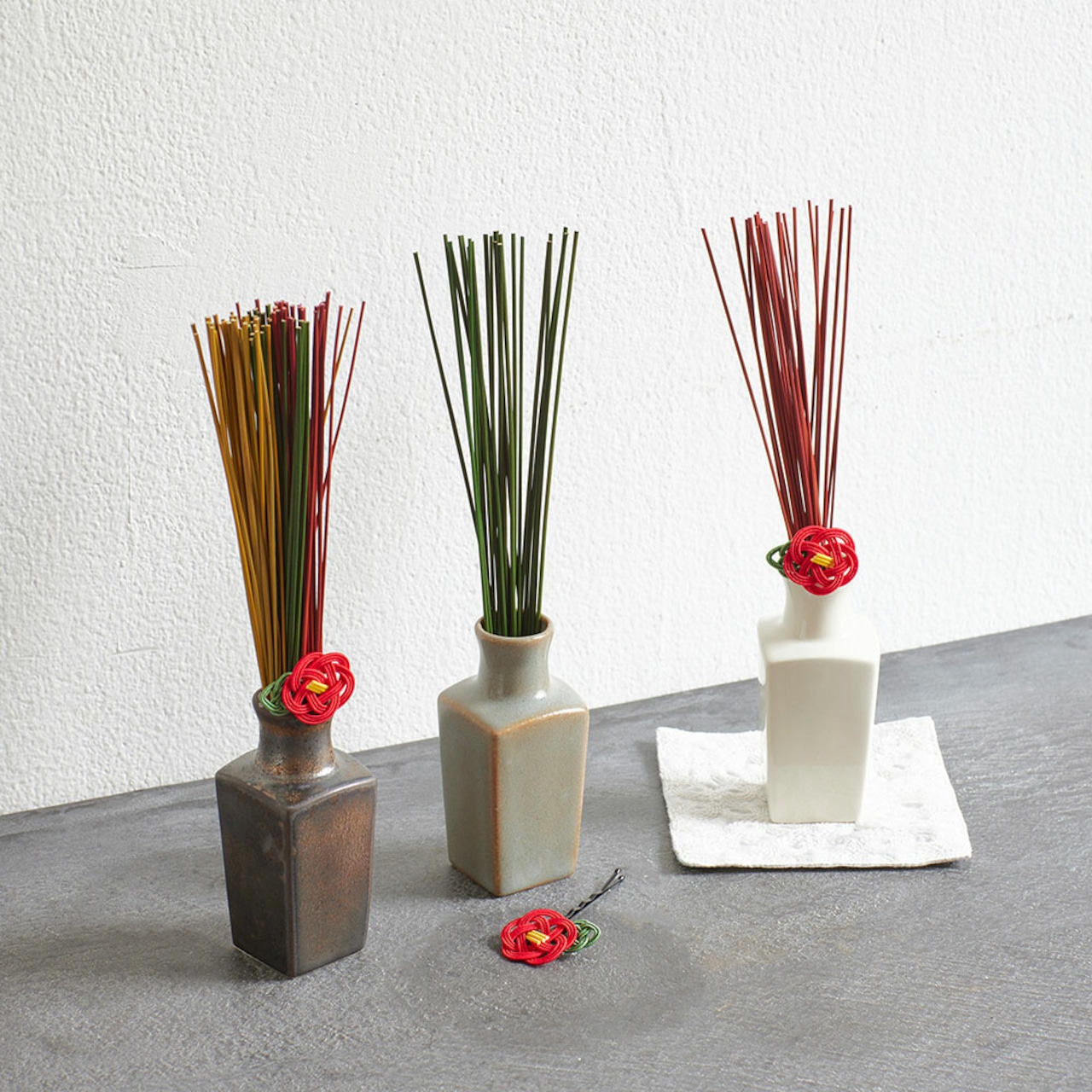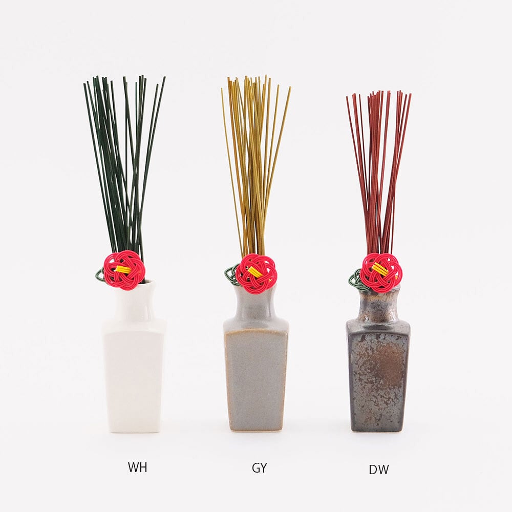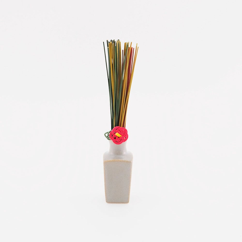 そんな焼物の産地で作られた小さな花瓶とセットになったい草のお飾りです。い草は3色すべて入っています。