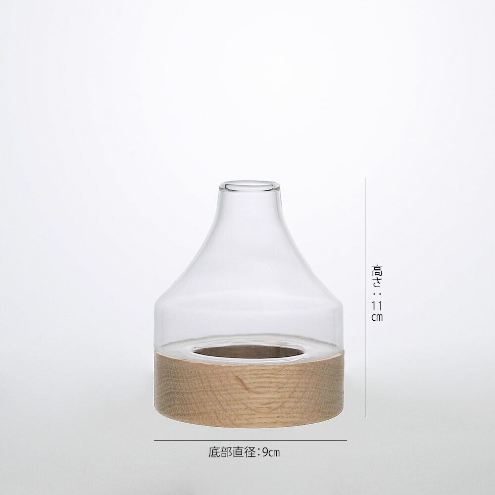 木とリューズガラスを組み合わせたフラワーベース テーパー ナチュラル 花瓶 インテリア 雑貨
