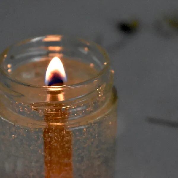 瓶に入った透明なジェルキャンドル。